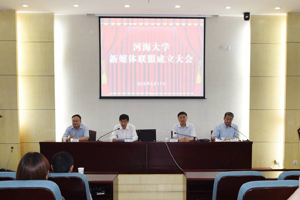 孙曙平副巡视员和朱拓书记共同为新媒体联盟成立揭牌。校团委、常州校区宣传部、商学院代表分别做新媒体建设经验交流发言。杨树兵主任为参会人员做《推进教育新媒体建设,构建教育舆论引导新平台》报告。