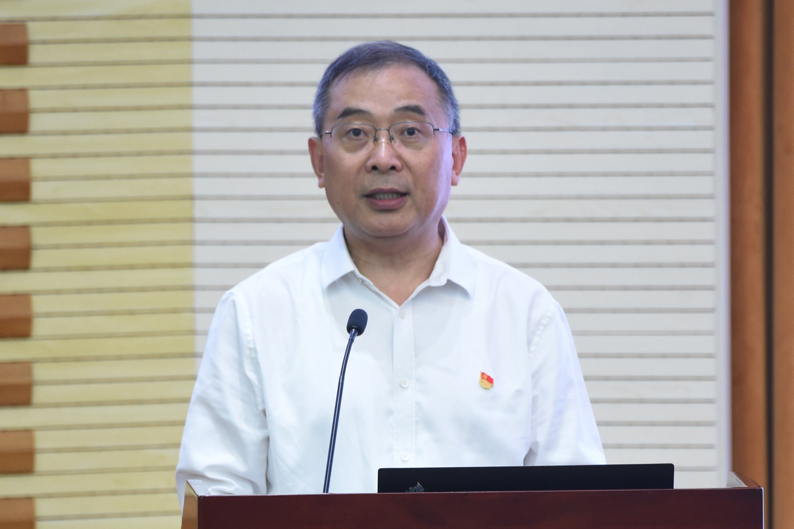6月12日,校党委书记杨桂山以《扎实开展深入贯彻中央八项规定精神学习教育,切实转变工作作风,持续营造风清气正的政治生态》为题讲授专题党课。教育部直属高校党建工作联络员盛邦跃到会指导。