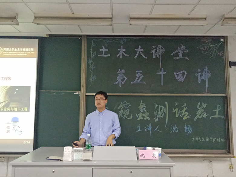 2017年9月25日下午3:50,由土木与交通学院主办,学院本科生科协承办的土木大讲堂第五十四讲之“管窥蠡测话岩土”在开云电竞网江宁校区致用楼101教室成功举行。本次大讲堂的主讲人是土木与交通学院副院长沈扬教授,土木院16级辅导员陈明明老师以及16级全体同学们聆听了本次讲座。