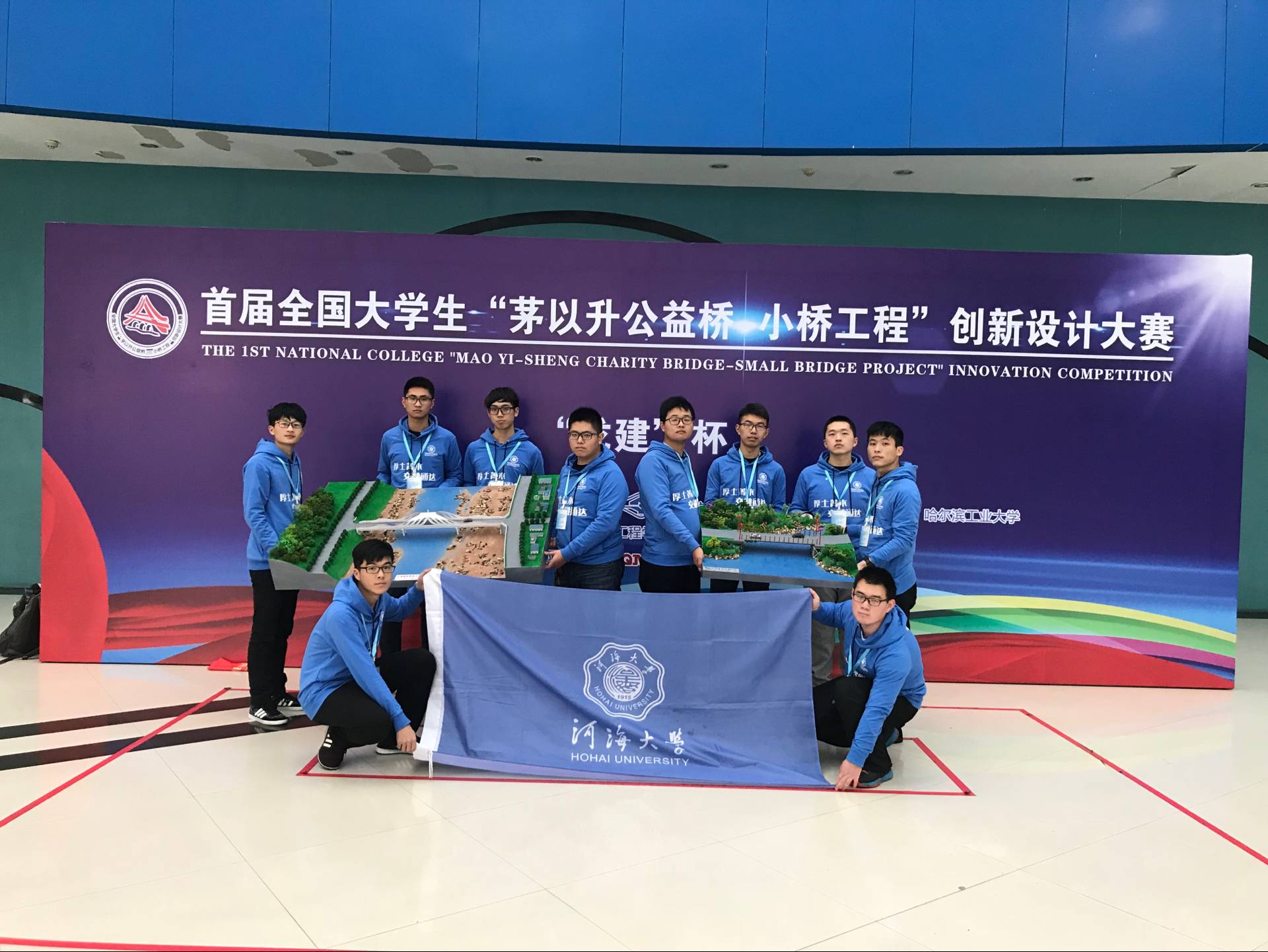 2017年12月8日至10日,首届全国大学生“茅以升公益桥——小桥工程”设计大赛在哈尔滨工业大学举办,我院选送的两件作品以所在答辩组第4和第6的成绩,分获三等奖。其中由2017级硕士生王强、2014级本科生林宏威与2015级本科生陈雨唐、曾豪、高天(指导教师:刘荣、汪传跃)完成的作品还获得社会实践优秀奖(全场仅3项),由2017级硕士生王亚军、2015级本科生马佳伟、何梓铭、唐瑞、孙沛钊(指导教师:袁爱民)完成的作品获得社会实践奖。