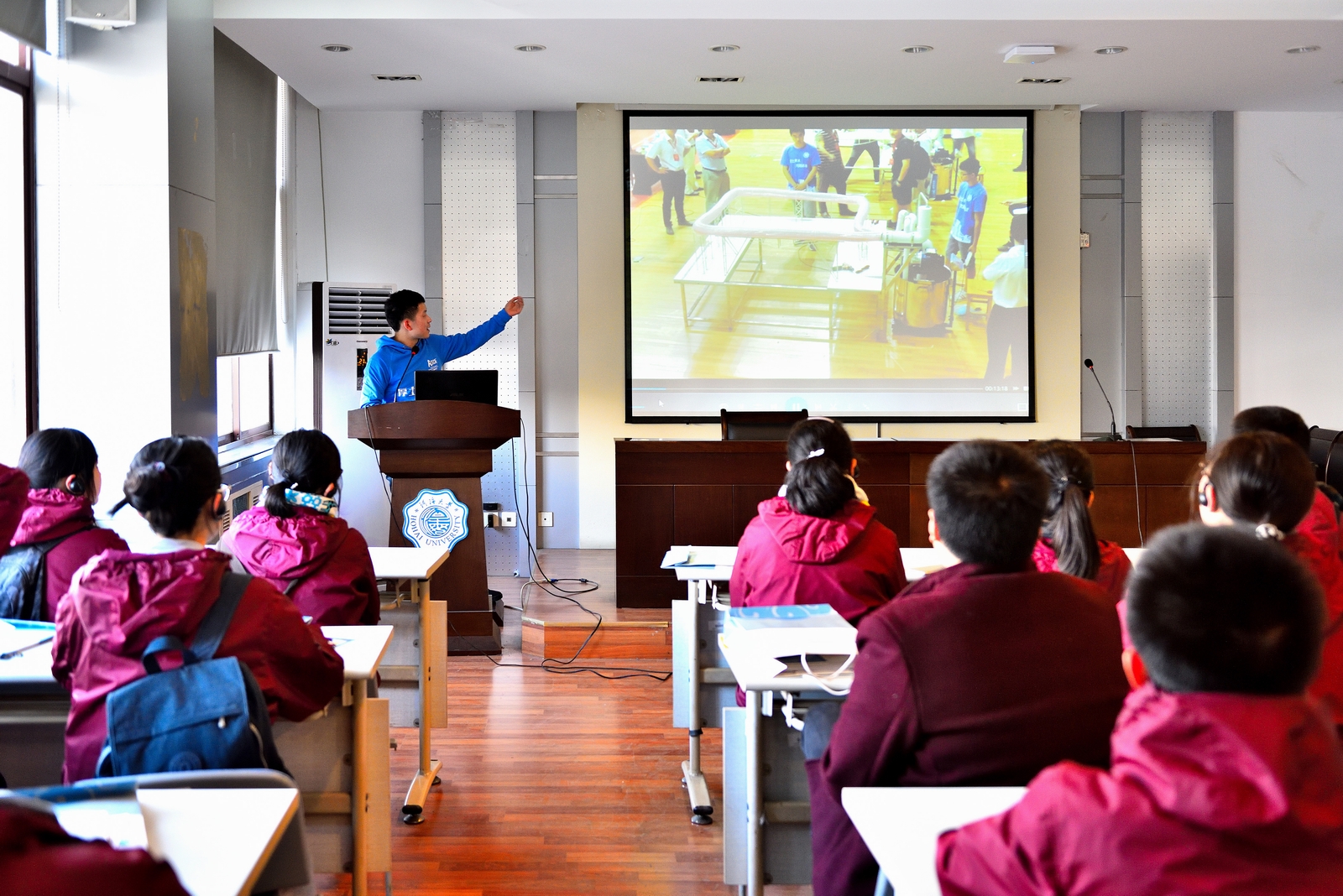 其后,由分会成员对全体参观师生进行了土木工程科普讲座。讲座通过生动有趣的表述和实例,将土木与建筑的区别,土木工程的应用以及土木工程对于中学生所学知识的需求都精准的概括在了一个简约而不简单的报告之中,博得了听讲学生的阵阵掌声。