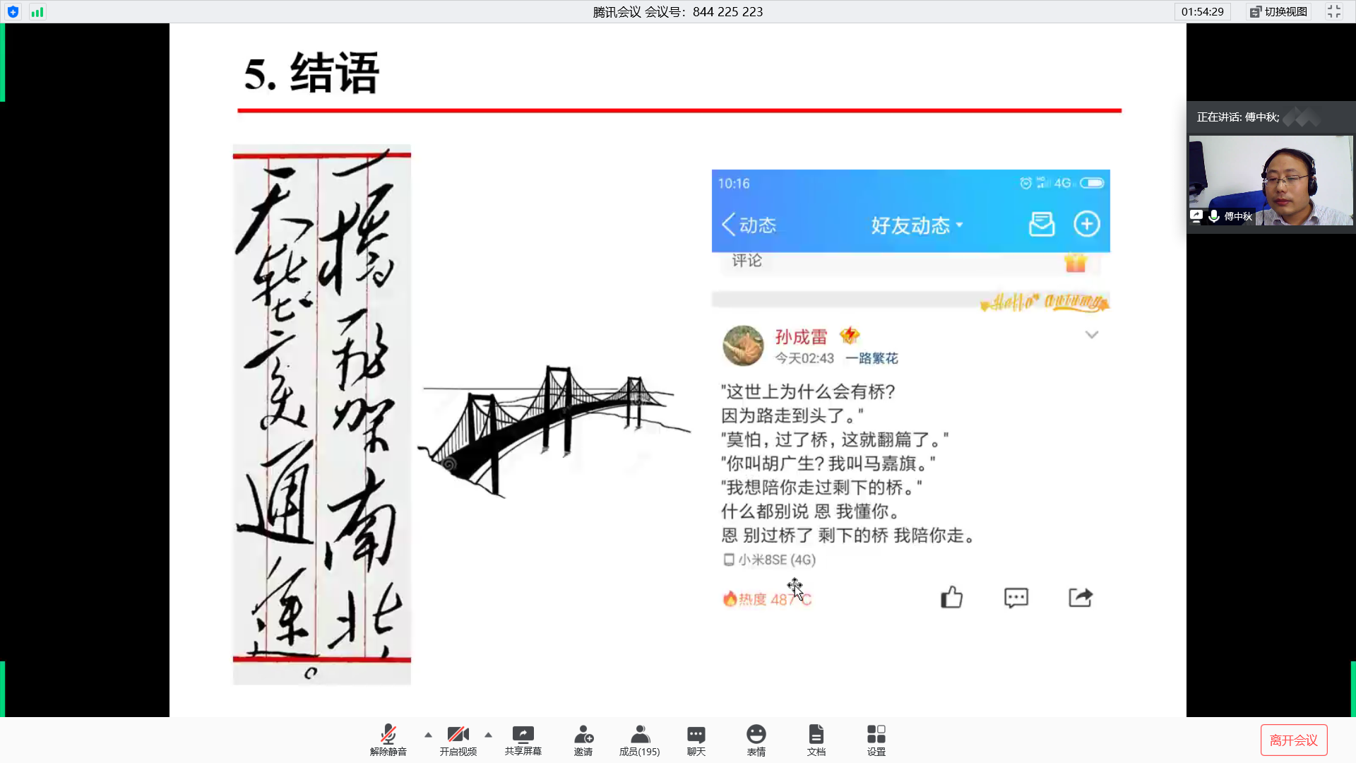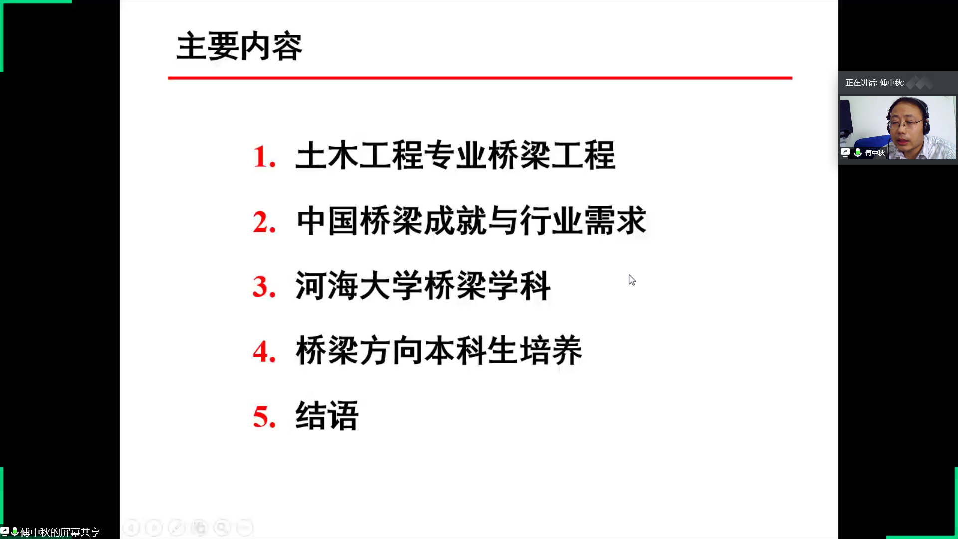 随后,傅中秋老师向同学们介绍了桥梁工程的相关内容。第一点是土木工程专业桥梁工程,包括桥梁的功能、桥梁的类型以及桥梁工程的方向。第二点是中国桥梁的成就与行业需求,傅中秋老师通过详细的数据分析向同学们展示了中国已在悬索桥建设以及桥梁里程数建设领域处于世界领先地位。第三点是开云电竞网桥梁学科,傅中秋老师细心地为同学们讲解河海桥梁学科的发展情况,并举例说明河海桥梁参与的代表性工程以及河海桥梁代表性成果。第四点是桥梁工程方向在本科阶段对学生培养模式,通过竞赛与创训、文化与传承和升学与就业等方面的指导来达到对学生的综合培养。傅中秋老师还分享了自身的学习经历并引用“一桥飞架南北,天堑变通途”来鼓励更多的同学参与到桥梁领域的学习和研究中去。