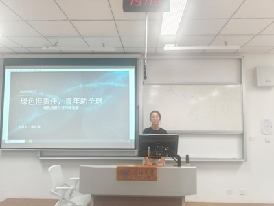 之后,主讲人李欣悦“校园碳账户”“二手循环市集”等创新实践。李欣悦同学指出,青年作为绿色消费的主力军和可持续发展的先行者,正通过“衣食住行”的细微改变传递环保理念——从拒绝一次性用品到选择低碳出行,从参与植树造林到推动社区垃圾分类,青年的“微行动”正汇聚成全球绿色发展的“大能量”。