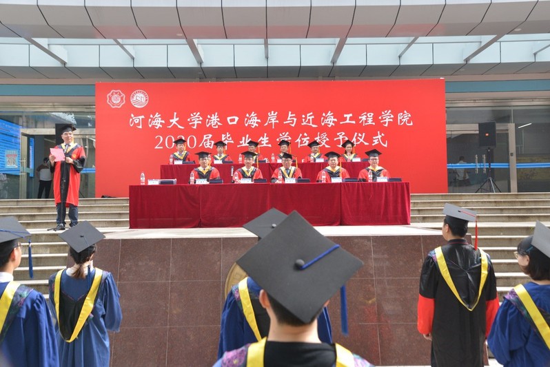 On June 11th, in the special period of epidemic prevention and control, the College of Harbour, Coastal and Offshore Engineering held a grand graduation ceremony for the 2020 graduates. Dean Gong Zheng, Party Secretary Hu Zhonghua, Vice Deans Zhang Jisheng, Zhang Wei and Chen Yongping, and members of degree evaluation committee Zhu Yuliang, Kong Jun, Zhang Chi, Xu Pengfei, Zhai Qiu and Luo Feng, as well as the 2020 graduates of the whole college attended the ceremony. The ceremony was presided over by Shen Guojun, deputy secretary of the party committee.