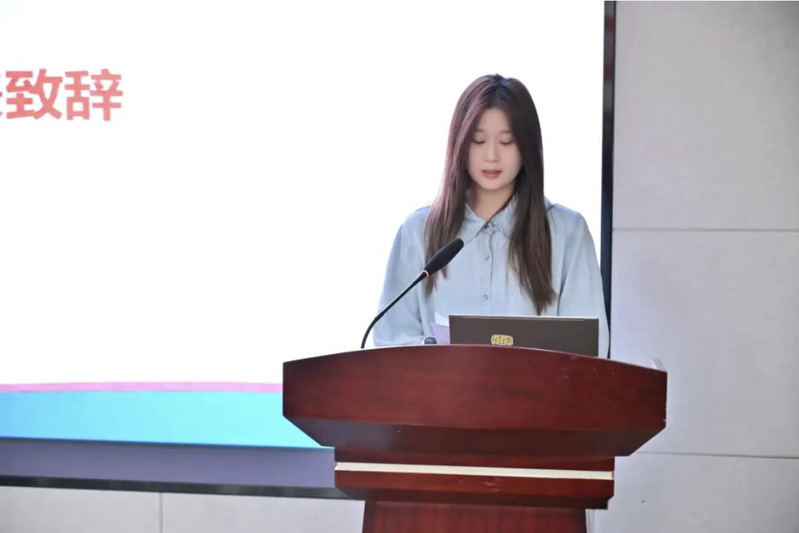 校研究生会代表沈哲如同学对大会的召开表示热烈祝贺,并对长期以来支持学生工作的全院师生致以诚挚谢意。她充分指出商学院研究生会通过一系列有序、创新的活动,有效服务同学学业与生活,营造了积极校园文化氛围,并赞扬学生干部认真负责、甘于奉献,发挥了桥梁纽带与建设中坚的作用。围绕未来工作,她提出三点建议:一是思想上与时俱进,主动学习宣传党的先进理论;二是心态上昂扬积极,传承服务精神与团结品质;三是行动上雷厉风行,切实服务同学、提升效能。