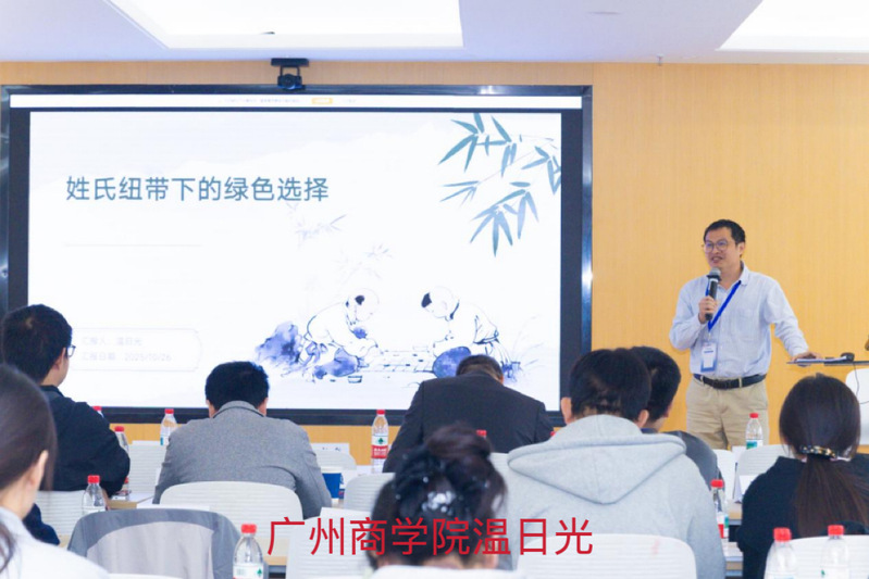 广州商学院温日光作题为“高管姓氏文化与企业环境信息披露质量:基于‘本家关系’视角”的报告。研究发现高管“本家关系”对环境信息披露质量产生显著的负向影响。