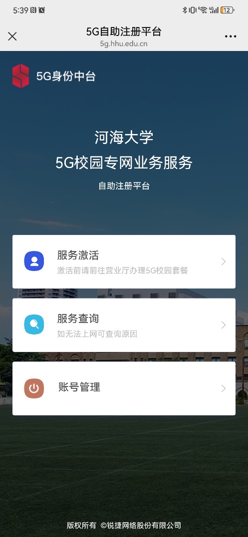 2)对于常州移动用户,暂未开通运营商端激活渠道,可先通过“开云电竞网5G校园专网业务服务自助注册平台”,完成学校端注册,具体开通成功时间需以常州移动通知为准。
