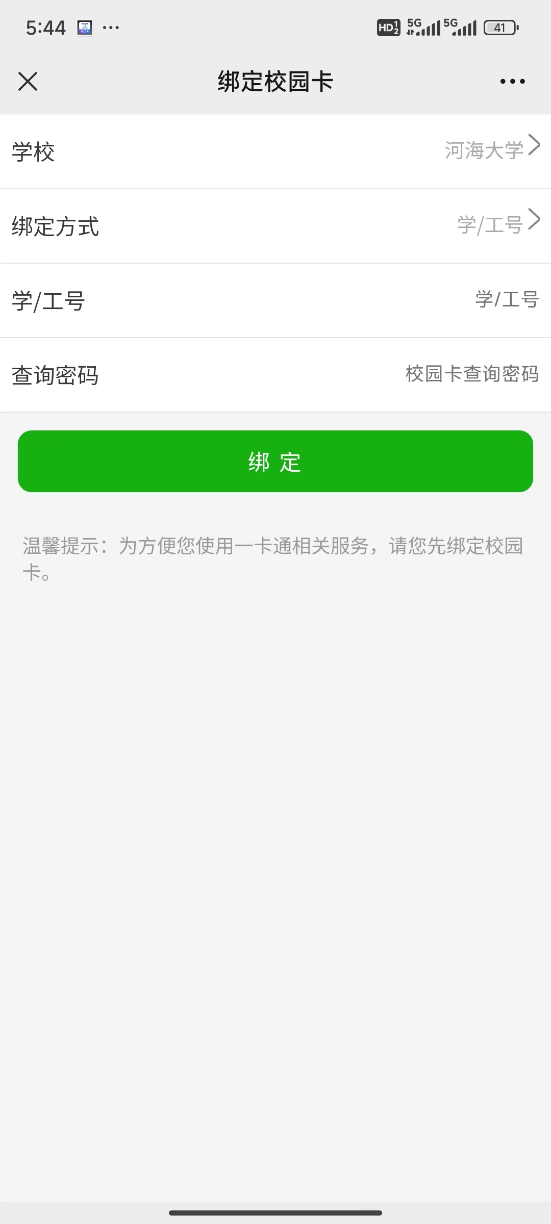 关注微信公众号“开云电竞网网信办”,选择“网信服务”,点击“自助校园卡”,输入“学/工号”和“查询密码”(校园卡初始密码为身份证后六位,如遇字母,密码为身份证倒数第七位至倒数第二位),点击“绑定”,绑定成功后点击“确定”。