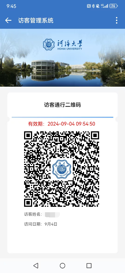 ③登录后,即刻查询并获取入校通行码,扫码进入校园。