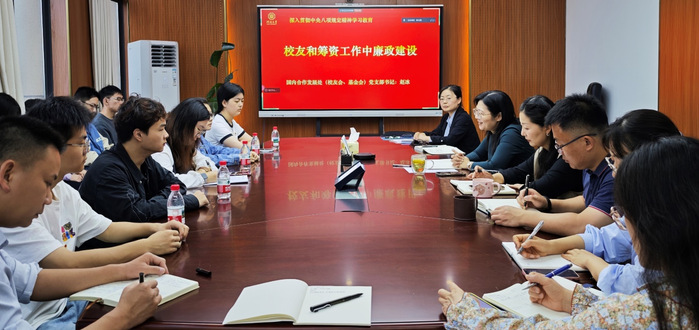 国内合作发展处(校友会、基金会)党支部书记赵冰以《校友和筹资工作廉政建设》为主题讲授专题党课。深入剖析了校友服务平台、合作洽谈、捐赠资金管理、捐赠项目审批等环节的廉政风险点,强调廉洁自律的重要性,通过强化廉政学习、完善内控监督机制、规范工作流程,构建“意识+制度+监管”三防线,健全防控措施。并要求师生党员将廉洁意识贯穿各项工作中,时刻接受监督,永葆党的先进性和纯洁性,切实将党建与业务深度融合,营造风清气正的工作生态。