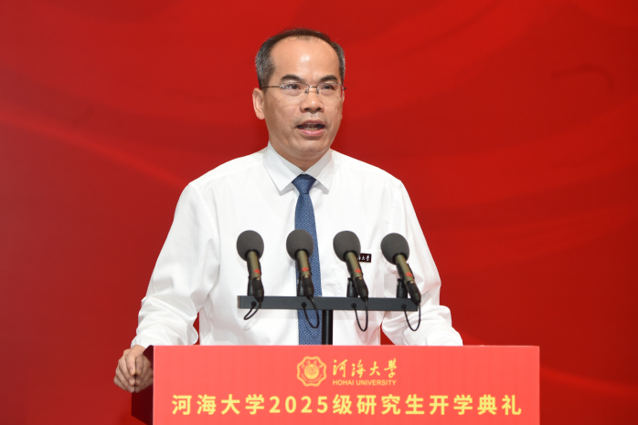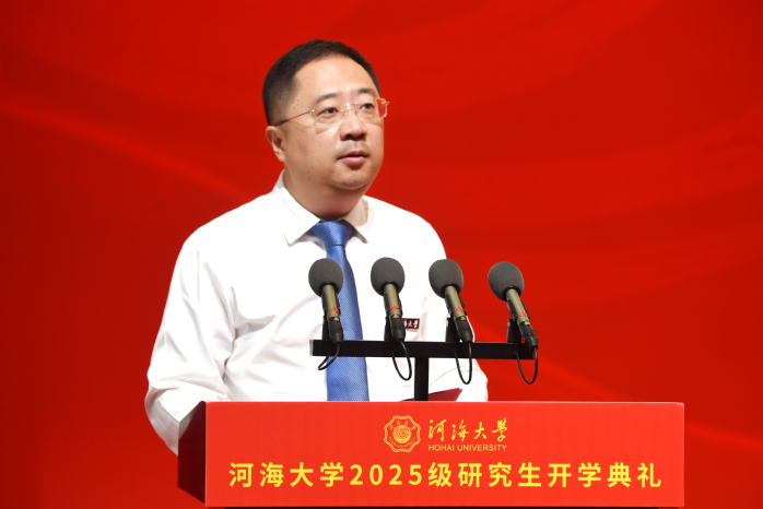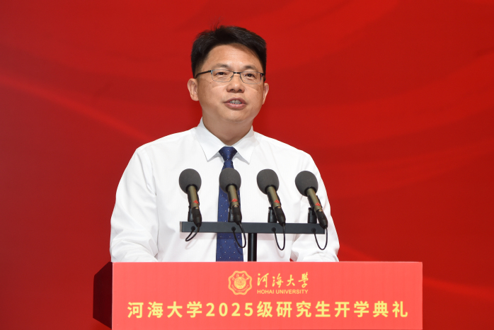 郑金海发表了题为《传承中求创新 实干中砺才学》的演讲。他代表学校向全体研究生新生表示热烈的欢迎,向辛勤付出的家长和老师们致以崇高的敬意。他表示,作为中国水利高等教育的发源地,在110年的发展历程中,学校始终扛牢“兴学育才、治水兴邦”的使命担当,一代代“河海人”用智慧与汗水,谱写着“我饮河海一滴水,我献祖国一生情”的壮丽篇章。