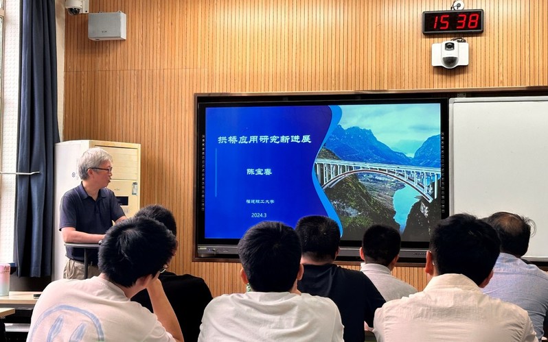 2024年5月27日下午,福建理工大学教授、福州大学桥梁与隧道工程学科带头人陈宝春受邀于我校工程馆111进行了题为“拱桥应用研究新进展”的学术报告。报告深入浅出地介绍了国内外拱桥的发展历程,系统分析了不同类型拱桥结构的力学性能、施工方法及适用范围,并对未来拱桥的发展及研究方向进行了展望。报告最后,陈宝春与参会师生亲切互动,并耐心解答了他们提出的问题。报告会由吉伯海老师主持,我校桥梁工程研究所教师及课题组学生共40余人参加了报告会。