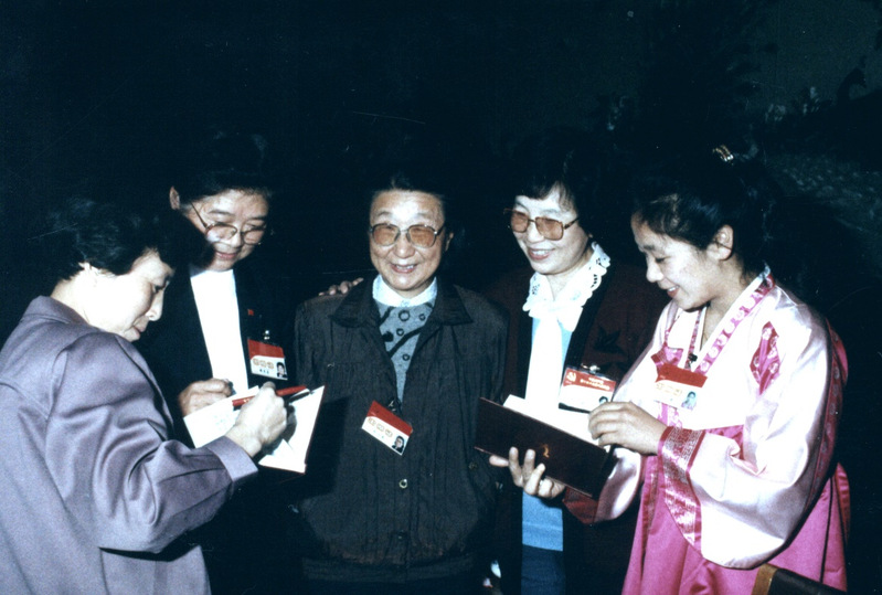 钱正英与几位女代表在中共十四大会场